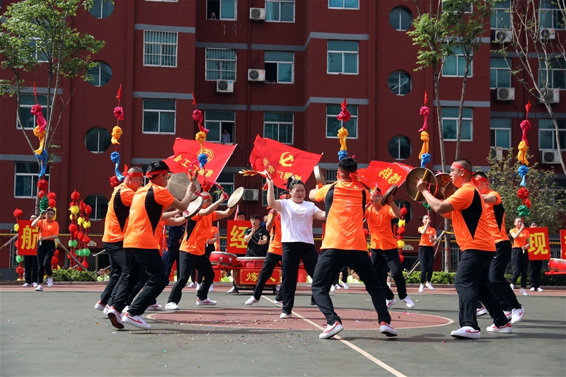 聲聲鑼鼓催人奮進(jìn),多彩的花桿祝福美好生活。展演的一線職工個(gè)個(gè)精神抖擻,多姿多彩的展演震撼著鋼城的角角落落。儲(chǔ)運(yùn)中心展演的鑼鼓《鐵軍催征》表現(xiàn)了廣大職工自強(qiáng)不息,奮起直追,銳不可當(dāng)?shù)木耧L(fēng)貌;能源檢計(jì)量中心《颯鼓勁鈸》柔中帶剛、鏗鏘有力,彰顯巾幗風(fēng)采;軋鋼廠《軋鋼工的一天》節(jié)奏緊湊、爭(zhēng)分奪秒,更顯朝氣蓬勃;煉鋼廠《鼓書(shū)韶華》大氣磅礴、異曲同工,渾厚而剛猛;而煉鐵廠《龍嘯九重天》穿越古今、夢(mèng)回大唐,氣勢(shì)如虹九重天;綜合服務(wù)公司和機(jī)關(guān)聯(lián)隊(duì)《歡騰的秧歌》更是別樣風(fēng)采,柔美妖艷、舞姿輕盈,婀娜多姿顯情懷。