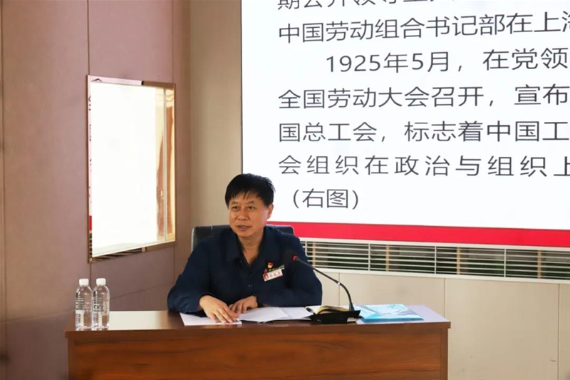 宣講中,趙春棠以《從黨領導中國工人運動的百年歷史中汲取奮進力量》為題,從中國共產(chǎn)黨領導工人運動的百年歷程、中國共產(chǎn)黨領導工人運動的理論探索、百年中國工人運動的啟示體會三方面進行了一場生動的宣講。并與參會人員進行了黨史知識互動問答,進一步引導廣大黨員干部傳承紅色基因,厚植為民情懷,切實為職工辦好事、辦實事、解難題。