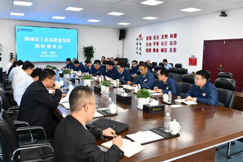 10月1日,國(guó)慶節(jié)當(dāng)天,韓城市委書(shū)記亢振峰,市委常委、常務(wù)副市長(zhǎng)張景鋒帶領(lǐng)發(fā)改委、工信局、自然資源局、經(jīng)開(kāi)區(qū)、龍門鎮(zhèn)等部門負(fù)責(zé)人到公司進(jìn)行工業(yè)高質(zhì)量發(fā)展調(diào)研,并召開(kāi)座談會(huì)。公司領(lǐng)導(dǎo)陳驍、劉安民、馮偉、王建軍及相關(guān)部門負(fù)責(zé)同志陪同調(diào)研。
