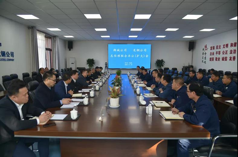 11月18日,龍鋼公司與韓城公司召開總經(jīng)理聯(lián)合辦公(擴大)會。龍鋼公司黨委副書記、總經(jīng)理李都宏,黨委委員、副總經(jīng)理馮偉,副總工程師習(xí)曉峰,韓城公司副董事長、總經(jīng)理趙林,韓城公司副總經(jīng)理袁浩、韓城公司西安分公司總經(jīng)理助理趙剛及雙方公司相關(guān)部門負責人參加會議。會議由李都宏主持。
