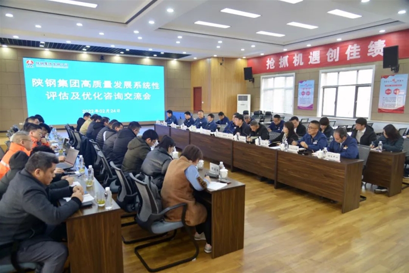 2月24日,陜鋼集團(tuán)高質(zhì)量發(fā)展系統(tǒng)性評估及優(yōu)化咨詢交流會在公司召開。陜鋼集團(tuán)戰(zhàn)略投資部總經(jīng)理樊定民、副總經(jīng)理白玉鵬,科技發(fā)展部副總經(jīng)理孫穎,中冶賽迪黨委委員、總工程師范新庫,項(xiàng)目經(jīng)理兼總設(shè)計(jì)師劉輝,公司領(lǐng)導(dǎo)李都宏、姜劍鋒、王建軍及相關(guān)單位人員參加。會議由樊定民主持。