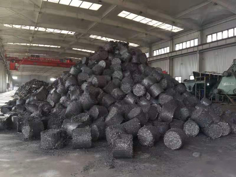 該廢鋼新料型原料主要來自自動車床加工配件時產(chǎn)生的車屑,邊絲等優(yōu)質(zhì)鐵材料,資源分布在汽車廠、模具廠、五金材料廠等重工業(yè)園區(qū)。鋼屑原料經(jīng)過加熱、篩分、剪切等預(yù)處理工藝后壓制成形,餅狀尺寸完全達(dá)到公司要求,熔煉后全鐵成分達(dá)到93%以上。經(jīng)配加使用和性價比分析,無油鋼屑壓餅相比傳統(tǒng)廢鋼具有性價比高,環(huán)保干凈,無雜質(zhì),堆密度高的顯著優(yōu)勢,能夠有效解決煉鋼配斗不足的問題。