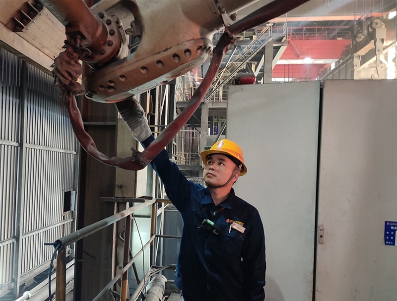 走上爐臺,一股熱浪迎面而來,離爐體越近,越能感受到偌大的爐子所散發(fā)出的熱力,爐口的熱輻射波浪陣陣襲來,讓人無法呼吸。爐口邊,維修工小張全副武裝,攀爬在爐體上,細(xì)心認(rèn)真地焊爐口。鏡頭無法捕捉到他作業(yè)時的正面,看著他的背影,就能想象到他身上的汗水在不停流淌,酷熱和灼烤,并沒有讓他退縮,他的意志卻更加堅定,近距離接觸在熱燙的爐體上,成為一名名副其實的“攀壁人”。他一絲不茍地焊著、補著,遠(yuǎn)遠(yuǎn)望去,他的身影很小,但他的形象在每個煉鋼人的心中卻是那么高大……