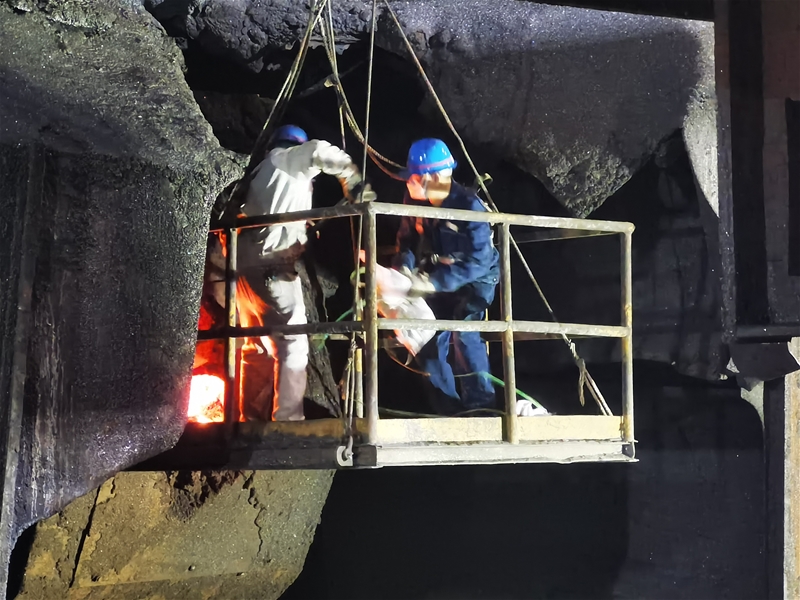 此次檢修時(shí)間緊、任務(wù)重,為了高質(zhì)量完成檢修任務(wù),該單位黨員干部瞄準(zhǔn)目標(biāo)、通力協(xié)作,“釘”在檢修現(xiàn)場。恰逢高溫時(shí)節(jié),檢修現(xiàn)場酷熱異常,從爐口散發(fā)出來的熱浪令人望而生畏。而所有參與檢修的斗士們毫不畏懼,他們身著白色阻燃服、腳踩專用耐高溫鞋,全副武裝,冒著炙烤進(jìn)行“清爐襯”作業(yè)。由于爐內(nèi)空間狹窄,加之溫度高,清爐襯過程異常艱難。他們分為兩組,輪換作業(yè),保證進(jìn)度絲毫不減。汗水浸濕了工服,汗珠往下滴個(gè)不停,而檢修隊(duì)員毫不理會,他們拼著勁往前沖……在他們的全力拼搏下,原本計(jì)劃一天拆完?duì)t襯,他們只用了半天就完成了,這就是煉鋼速度。