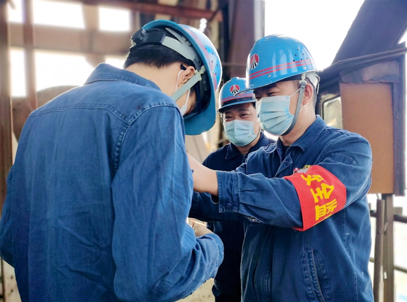 “同志,請(qǐng)將第一顆紐扣扣緊,注意安全。”安全督查員陳建勛一邊進(jìn)行安全提醒,一邊細(xì)心為這名員工扣上紐扣。“您好,請(qǐng)出示三級(jí)動(dòng)火作業(yè)許可證。”在料罐更換均壓盲板檢修現(xiàn)場(chǎng),安全員薛曉勇正確認(rèn)外協(xié)單位動(dòng)火作業(yè)手續(xù)是否齊全。“現(xiàn)在可以繼續(xù)作業(yè),作業(yè)過程做好監(jiān)護(hù),注意安全……”他們時(shí)時(shí)刻刻都在給檢修人員敲響安全警鐘。
