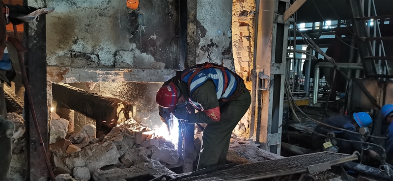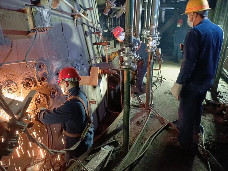 內委、外協(xié),協(xié)同作業(yè)。在檢修現(xiàn)場,一群藍色牛仔服中加入迷彩、黑色、天藍等其他顏色的衣服,帶有龍鋼標志的各色安全帽,也加入了其他樣式的帽子。他們是來自全國各地的外協(xié)施工人員。年終檢修時間緊、任務重,檢修任務保質保量完成離不開這些人員的辛勤付出。公司對本部施工人員承修的區(qū)域進行管理推進的同時,按照“一家人共事,一體化管理”的理念,對外協(xié)單位的現(xiàn)場檢修進度、檢修質量、施工安全進行同步跟蹤、驗收、監(jiān)管,內委、外協(xié)檢修人員齊心協(xié)力,確保此次年終檢修保質保量順利完成。