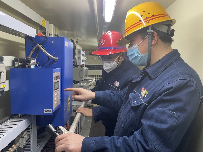 元旦期間,生產(chǎn)現(xiàn)場忙而不亂,堅守崗位的電工、儀表工正認(rèn)真細(xì)致檢查設(shè)備,他們各負(fù)其責(zé)、相互配合、井然有序。
