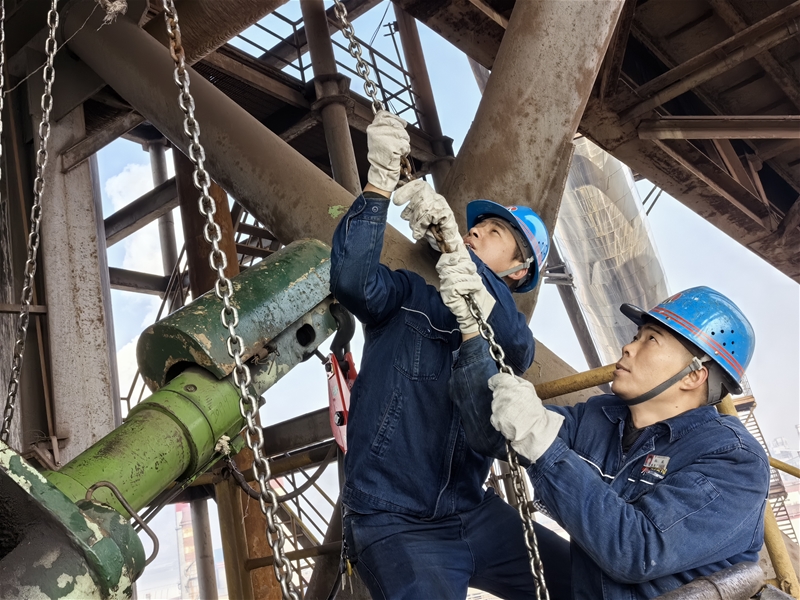 經(jīng)過(guò)三個(gè)半小時(shí)輪番作戰(zhàn),最后一根螺栓被成功擰下,“終于將溜槽拆卸下來(lái)了,這一仗我們打得真漂亮!”這一刻,整個(gè)團(tuán)隊(duì)都?xì)g呼起來(lái)。