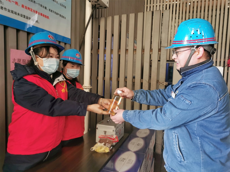 “熱騰騰的姜糖水,喝點(diǎn)暖暖身。”該單位分別在爐臺、爐頂及熱風(fēng)爐區(qū)域設(shè)立志愿服務(wù)站,精心為參檢人員熬制“暖心姜糖水”,為檢修做好后勤保障。