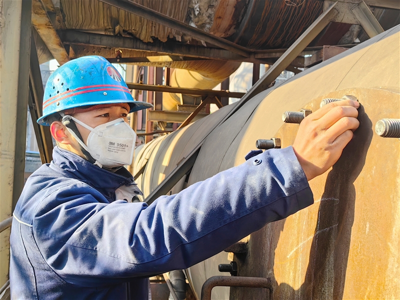 “滴噠噠,滴噠噠……”風(fēng)鎬的陣陣沖擊聲從渣處理熱水池傳來。站在6米深的熱水池邊,渣處理主操鬲敏學(xué)正手持風(fēng)鎬,瞄準(zhǔn)那塊最高最硬的黏結(jié)積渣,屏息凝氣,三下五除二將堅(jiān)硬的積渣擊碎。
