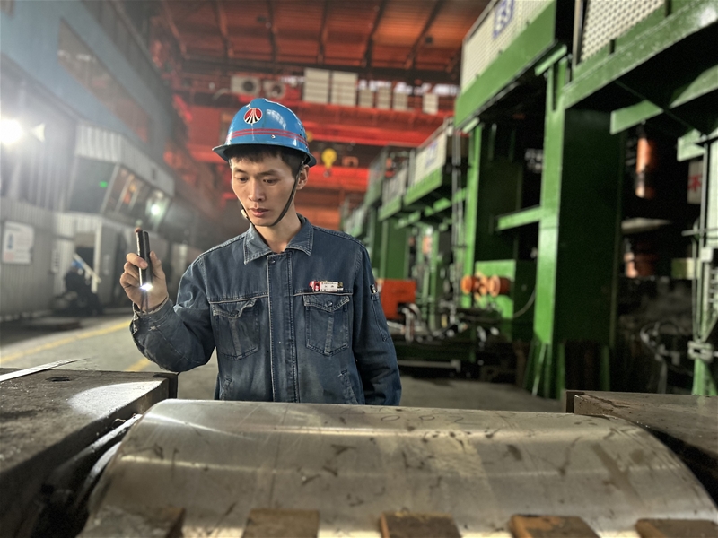 好在卜丹有棒材生產(chǎn)的工藝操作基礎(chǔ),看著師傅操作,他一邊和棒材生產(chǎn)工藝操作進(jìn)行對(duì)比,找不同和相同;一邊模仿師傅操作,無(wú)論是換輥還是生產(chǎn)操作,他都認(rèn)真對(duì)待。同時(shí),不放過(guò)任何一次學(xué)習(xí)的機(jī)會(huì),不管是師傅、班長(zhǎng)還是工長(zhǎng),只要誰(shuí)有空,誰(shuí)就成為他“窮追不舍”的對(duì)象,被他多次打破砂鍋問(wèn)到底的工長(zhǎng)說(shuō):“看到卜丹鍥而不舍的學(xué)習(xí)勁頭,很感動(dòng),也樂(lè)意傾囊相授。”在師傅的教導(dǎo)下,他憑借不懈的努力和刻苦學(xué)習(xí),學(xué)會(huì)了換輥和停開機(jī)的日常操作。如今,他已經(jīng)熟練掌握了帶鋼設(shè)備的操作和維護(hù)技能,成為一名優(yōu)秀的帶鋼粗軋操作工,也成為新工心中“最厲害”的師傅。