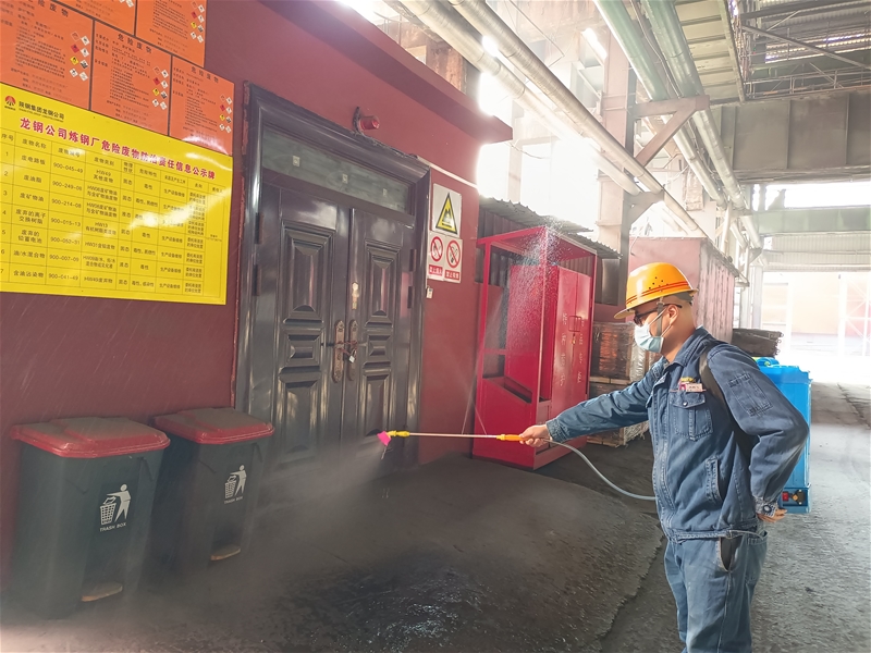 1月11日晚上11點,安全員肖鵬飛正在給陸續(xù)到崗的職工測量體溫,檢查口罩佩戴情況,并詳細詢問每個職工生活軌跡,然后一項項認真填寫到檢測表上,一項項工作緊張而有序。等交接班的職工全部檢查完畢,一切正常,肖鵬飛長舒了一口氣,緊接著他背起幾十斤重的消毒桶,開始對區(qū)域進行消毒,主控室、推鋼室、連鑄平臺,他來回穿梭在煉鋼廠,按時按點給各操作室消毒。他利用班前班后會組織職工學(xué)習(xí)《新型冠狀病毒感染的肺炎防控知識手冊》,督促引導(dǎo)職工在廠區(qū)內(nèi)、崗位上、出入餐廳、乘坐通勤車時均能持續(xù)并正確佩戴口罩。他還不定期檢查各班組的消毒記錄、口罩銷毀記錄及“一人一檔”信息卡的更新情況,準確掌握職工身體情況,從嚴從實抓好疫情防控工作。