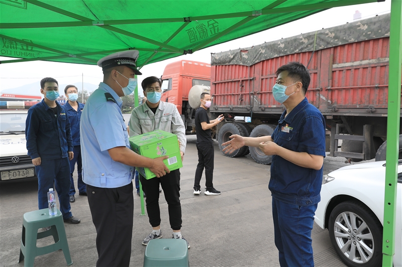 8月10日,公司黨委委員、工會主席趙春棠帶領(lǐng)工會辦公室一行到工業(yè)園區(qū)高速路口慰問堅守在防疫戰(zhàn)線上的工作人員,為他們送去礦泉水、方便面、飲料等慰問品以及企業(yè)大家庭的關(guān)愛和溫暖。