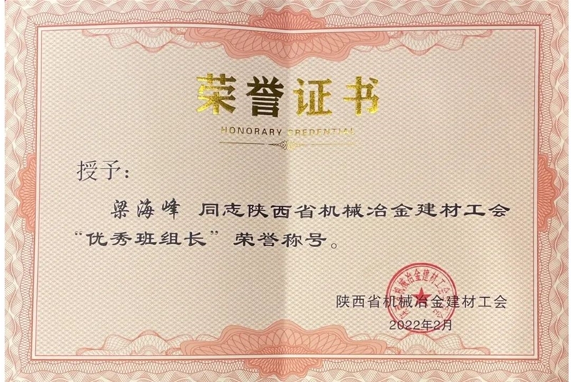 薛小永勞模工作室榮獲陜西省機(jī)械冶金建材系統(tǒng)“優(yōu)秀創(chuàng)新工作室”