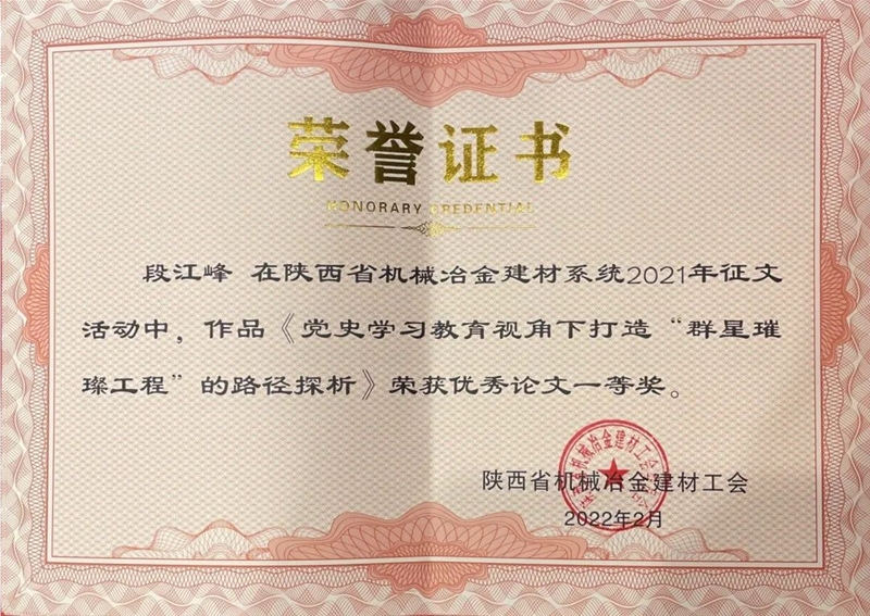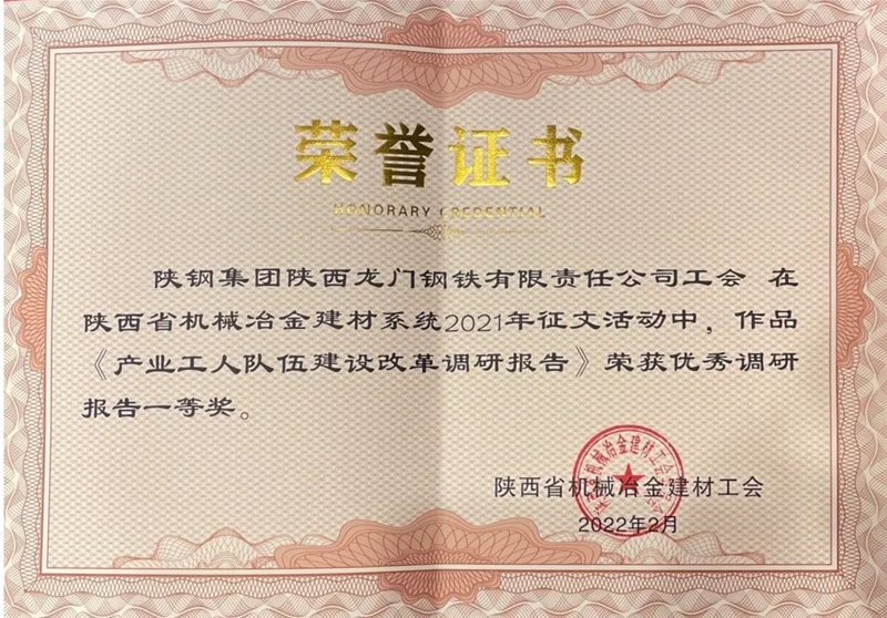 公司工會(huì)作品《產(chǎn)業(yè)工人隊(duì)伍建設(shè)改革調(diào)研報(bào)告》榮獲陜西省機(jī)械冶金建材系統(tǒng)優(yōu)秀調(diào)研報(bào)告一等獎(jiǎng)