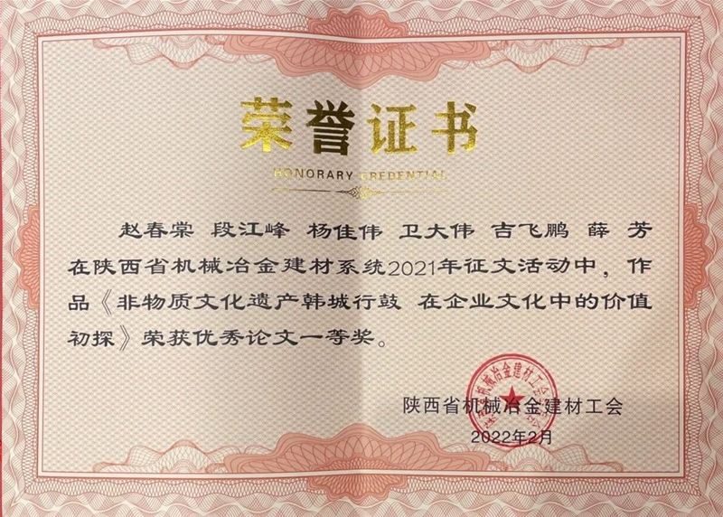 公司論文《非物質(zhì)文化遺產(chǎn)韓城行鼓 在企業(yè)文化中的價(jià)值初探》和《黨史學(xué)習(xí)教育視角下打造“群星璀璨工程”的路徑探析》榮獲優(yōu)秀論文一等獎(jiǎng)