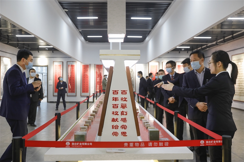 巡展現(xiàn)場,書畫愛好者們現(xiàn)場揮毫潑墨,以墨傳情,將鋼城的文化留在蒲白,讓文化藝術(shù)進行碰撞,形成共鳴。參觀人員徜徉在書畫攝影的藝術(shù)世界里,細細品味每幅作品的藝術(shù)魅力,感悟作者賦予作品的情感和內(nèi)涵,在一幅幅作品中獲得思想啟迪和精神升華,用濃濃的藝術(shù)情懷凝聚起陜煤“奮進者”文化高質(zhì)量發(fā)展的磅礴力量。公司一等獎攝影作品《冬日午后檢修忙》在現(xiàn)場引起眾多參觀人員關(guān)注,大家結(jié)合作品進行了深層次交流。與此同時,公司工會一行還參觀了蒲白礦業(yè)公司黨史學(xué)習(xí)教育大課堂及書畫展廳。此次參觀不僅讓大家感受到一場藝術(shù)盛宴,而且也接受了一次黨史學(xué)習(xí)教育的思想洗禮,進一步激勵干部職工弘揚革命文化,汲取奮進力量,立足本職、扎實工作,為企業(yè)高質(zhì)量發(fā)展再立新功。