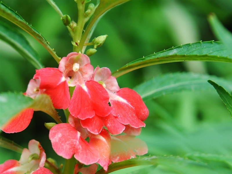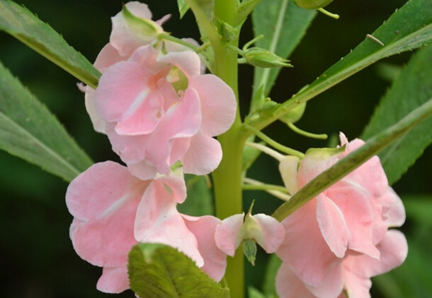 鳳仙花,實(shí)際上就是我們常叫的指甲花、染指甲花、小桃紅,因其花的頭足尾翅翹起來(lái)的樣子如鳳狀,因此稱為鳳仙花。鳳仙花的種類繁多,有大紅、粉色、粉紫色、白色等。這種花的種子生命力極其頑強(qiáng),種子遇到外力就會(huì)破裂開,漏出像小米粒大小一樣的種子。因此,鳳仙花的花語(yǔ)中有“別碰我”之意。然而,鳳仙花的花期比較長(zhǎng)久,一般會(huì)從六月一直開到深秋。查閱一番資料得知它的作用也極其廣泛,除了用于風(fēng)景花觀賞,采上幾朵也可以當(dāng)做花茶泡水喝,可以治療女性的腹痛,搗爛敷在指甲上可以治療灰指甲,而指甲花的根曬干后碾成粉末狀與水沖服,可以治療跌倒損傷。