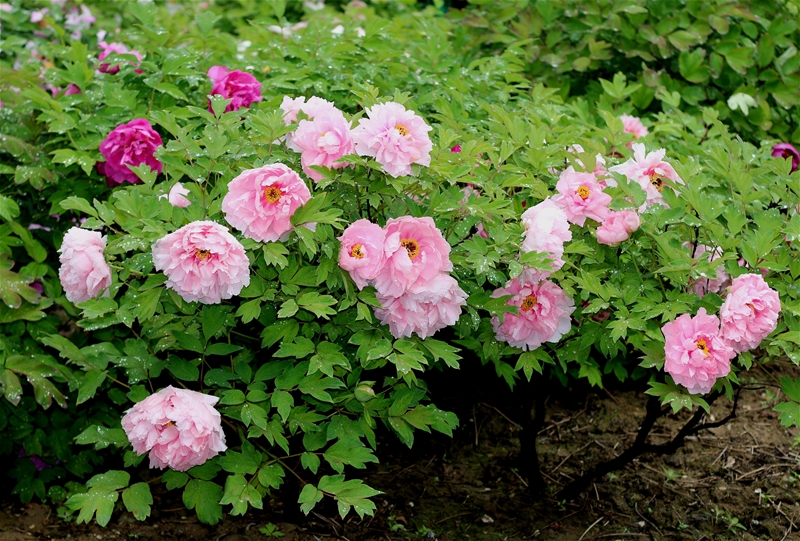 雨過(guò)天晴后,我獨(dú)自一人第三次去了牡丹園,果然牡丹樹下有了好多被雨滴打落的花瓣,也有最早開(kāi)花的自然凋落花瓣。雖然有了殘缺,但好多正盛的花兒依然華美芳菲又國(guó)色天香,還有個(gè)別含苞欲放的正在抓住春光的尾巴努力綻放,向人們展示自己鮮艷的美、奔放濃郁的香。