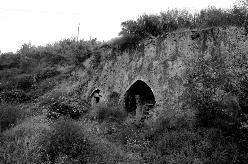 幸遇熱心村民協助,于荒草野樹中搜尋,辨識到當年職工所住窯洞三孔,及爐基、冷卻水管,蓄水池、食堂等遺跡。
