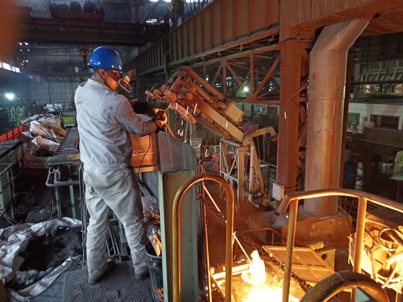 再苦再累不松勁。不論是刮風(fēng)下雨還是春夏秋冬,連鑄生產(chǎn)現(xiàn)場(chǎng)永遠(yuǎn)都被高溫灼烤環(huán)繞。而7月的連鑄現(xiàn)場(chǎng)在不透風(fēng)的廠房里儼然如同熱滾滾的“汪洋”???,臺(tái)上中包工一個(gè)個(gè)汗流浹背,汗水從安全帽底下流到臉頰,下巴上的汗珠一顆、一顆掉在地面。眼睛早已被汗水模糊了視線,他隨手用袖口一擦,眨了眨泛酸的眼睛,又繼續(xù)忙活。臺(tái)下3CT的切割工站在火紅的鋼坯旁,鎮(zhèn)定地用氧槍在切割尾坯,臉頰早已被灼烤的發(fā)紫,衣服被汗水澆透又被高溫蒸發(fā),留下一道道白色的汗?jié)n,而手里握著的割槍卻始終保持一個(gè)動(dòng)作,直到尾坯被割斷。雖然工作服已經(jīng)被高溫灼烤到燙手,腳上的勞保鞋里面全是汗水,但是他仍然沒有停止自己的工作,收起氧槍后,使勁吹了一下掛在脖子上的口哨,又繼續(xù)指揮天車開始吊運(yùn)尾坯。