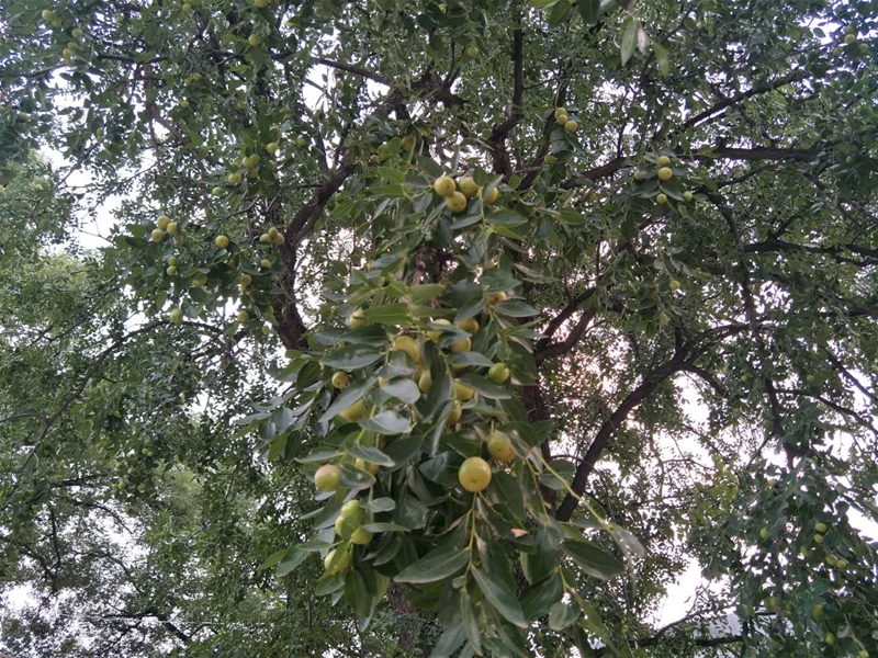 小時(shí)候,一到暑假,我們都是脫韁的小野馬,追雞逗狗好不熱鬧,爬上隔壁家圍墻去摘還沒長成的石榴,攀上陡崖山洞探索里面的神秘,下來將衣服掛的到處都是口子,回家被胖揍一頓。那時(shí)候誰家要是有棗樹,那誰家就是搗蛋軍常駐地,我爺爺家院子里有棵老棗樹,出名的甜,每年暑假看著棗子青著,心就開始癢癢,棗樹的枝椏像傘一樣伸展到瓦房頂,給了我們“上房揭瓦”的勇氣。正中午,大太陽火辣辣,趁爺爺在門口瞇午覺,爬著墻就上了瓦房頂,坐在屋脊上伸手就可以夠到青棗,摘一個(gè)放在嘴里,不很甜,有股青草汁的味道,像孫悟空吃蟠桃,吃一口扔下去,一會就能看見爺爺手持小棍在下面喊:“棗還沒熟,瓦都踩破了,下雨天到處漏雨,你給我下來!”一群人嬉笑著不以為然,小兔一樣躥走。等到明天又如故上房,每天孜孜不倦的等待棗紅。比起紅棗,青棗更承載了童年的所有歡樂,雖然爺爺總是喊著要把棗樹砍掉防止我們踩他的老房子頂,但是卻從來沒有付諸行動過,老棗樹還在,孫子、孫女才能常來躥一躥,院子里才常有笑聲,這是他不在以后我才領(lǐng)悟到的。