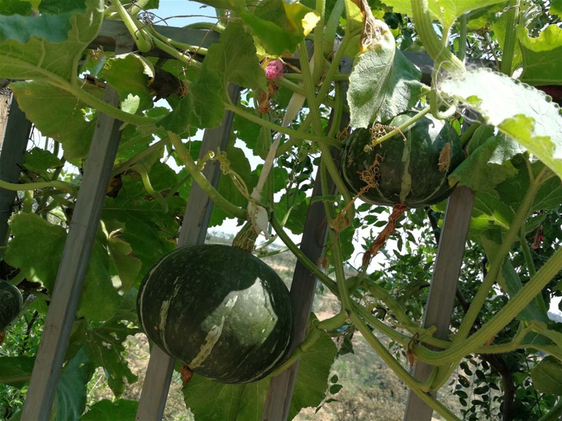 來(lái)到家里的后院,剛跨過(guò)后院門就看到爺爺種的各種花草,在遠(yuǎn)一些是這個(gè)季節(jié)的蔬菜。從記事起爺爺就愛(ài)種花草,今年也一樣,葫蘆藤上結(jié)滿了小葫蘆,隨風(fēng)擺動(dòng),就像是一群葫蘆娃在向我打招呼,情不自禁的摘下一個(gè)洗了洗讓孩子玩。記得小時(shí)候自己偷偷的摘了個(gè)葫蘆去和同伴們玩,回來(lái)讓爺爺一頓好罵。后院的大部分地方爺爺都種上了菜,大片的辣椒,幾個(gè)黃瓜騰,西紅柿,茄子和豆角……看著這些新鮮綠色的食材我覺(jué)得我胃口大開(kāi)。