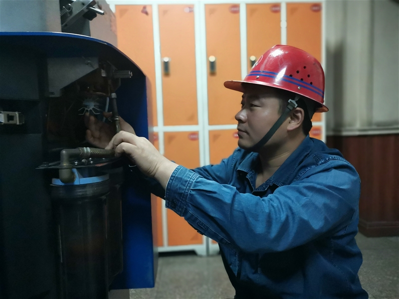 晚上8:00,操作間依然機(jī)器轟鳴,現(xiàn)場(chǎng)一片忙碌景象。班長(zhǎng)楊博頂著四十多度的高溫,認(rèn)真仔細(xì)排查設(shè)備隱患。在大家心目中,他是一位資深的光譜維修“醫(yī)生”。憑著自己的專業(yè)能力,他能夠及時(shí)判斷出設(shè)備問題的癥結(jié)。這不,他正針對(duì)光譜儀排氣不暢、氬氣排氣管路堵塞、火花室下部的彎頭內(nèi)有異物的故障,巧妙采用更換排氣管和透明塑料管的方法,并定期對(duì)排氣管路進(jìn)行吹掃,取得了良好效果。