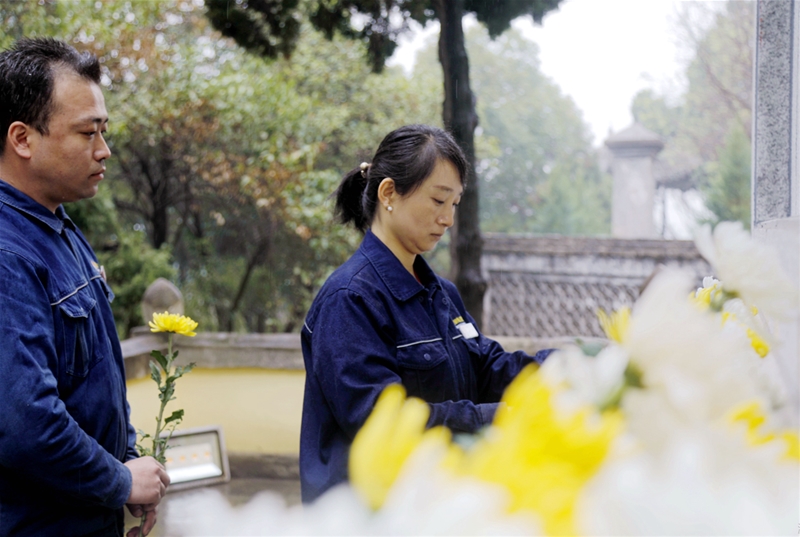 圖六:煉鐵廠機關(guān)黨支部書記薛芳到王平順墓前敬獻鮮花。