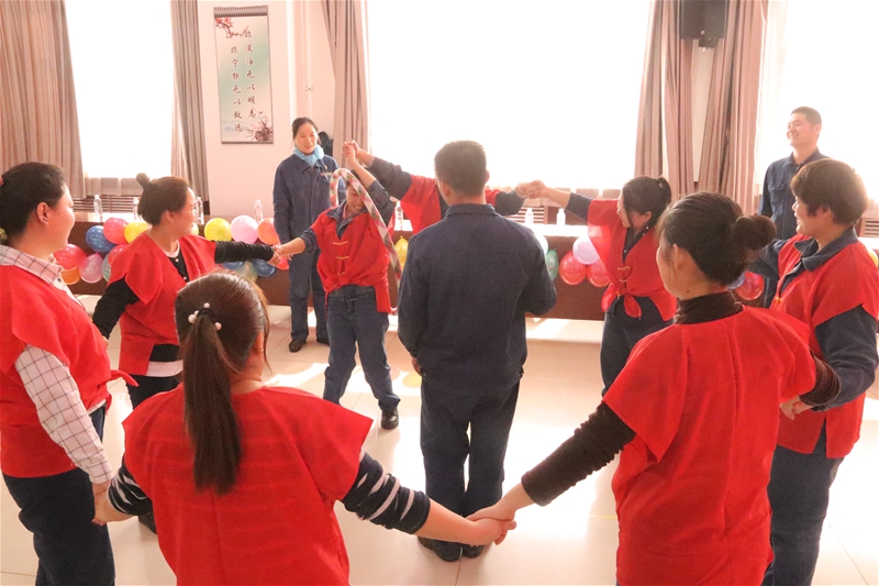 下午兩點(diǎn),來(lái)自各單位的60余名女工代表歡聚一堂,共同慶祝自己的節(jié)日。此次團(tuán)隊(duì)游藝活動(dòng)共有五個(gè)參賽隊(duì),設(shè)置“黃金拍檔、穿越呼啦圈、鐵人接力、助力火車(chē)”四個(gè)項(xiàng)目?;顒?dòng)過(guò)程中,參賽隊(duì)員個(gè)個(gè)精神抖擻、奮勇?tīng)?zhēng)先,盡情享受運(yùn)動(dòng)的快樂(lè),充分展現(xiàn)了“半邊天”的智慧和奮發(fā)向上的干勁。由女職工自導(dǎo)自演的手語(yǔ)舞《讓愛(ài)傳出去》將活動(dòng)推向了高潮。