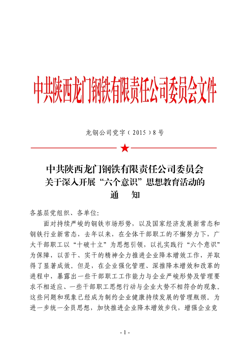 中共陜西龍門鋼鐵有限責(zé)任公司委員會(huì)關(guān)于深入開展“...