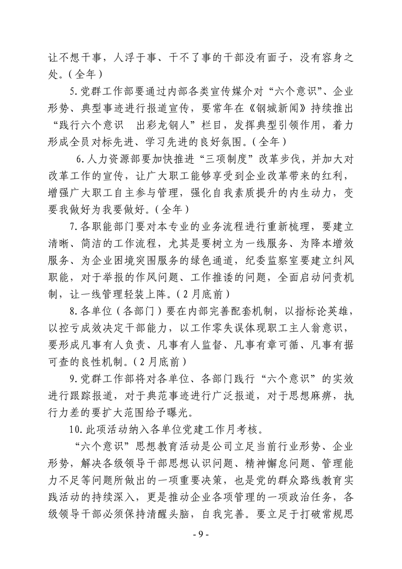 中共陜西龍門鋼鐵有限責(zé)任公司委員會(huì) 關(guān)于深入開展“六個(gè)意識(shí)”思想教育活動(dòng)的通知