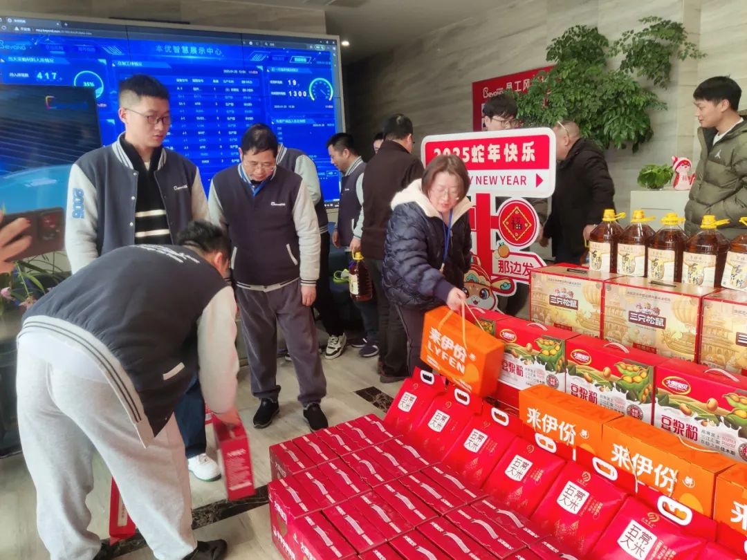 碩果累累辭舊歲,喜氣洋洋迎新春。為表達(dá)對全體本優(yōu)員工的新年祝福和濃濃關(guān)愛,感謝大家在過去一年的辛勤付出和努力奉獻(xiàn),在本優(yōu)領(lǐng)導(dǎo)的關(guān)心下,1月20日,本優(yōu)向員工們發(fā)放了暖心的春節(jié)大禮包。