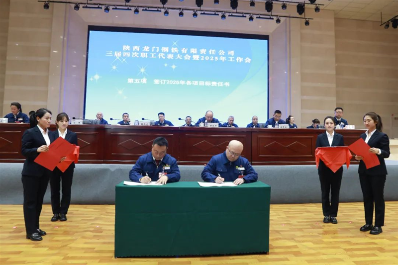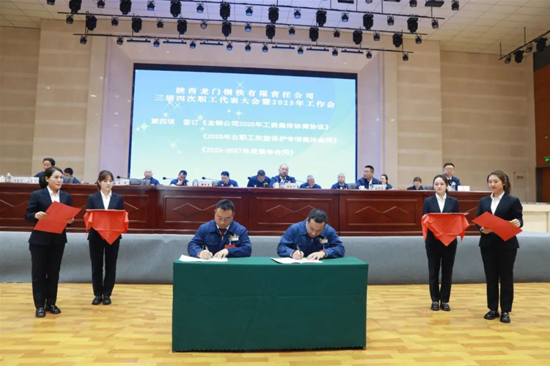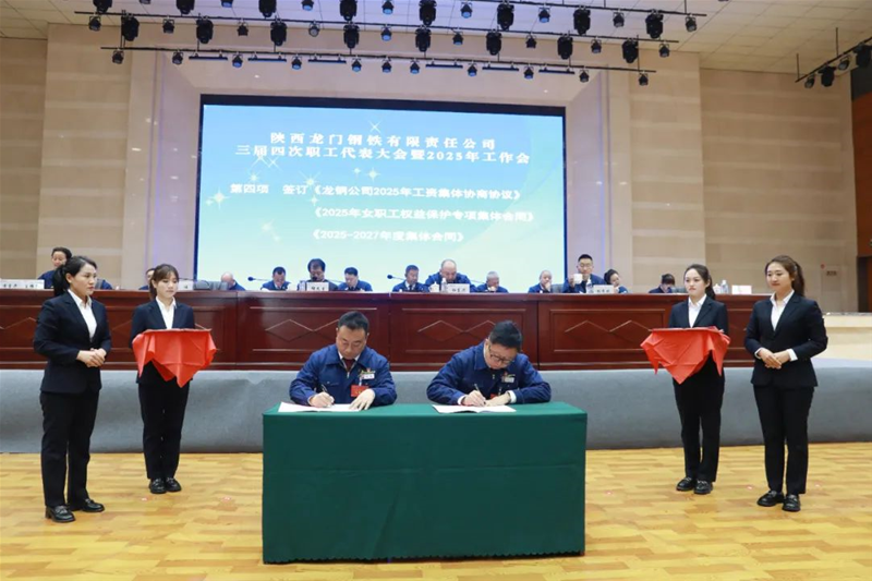 會(huì)上簽訂了《龍鋼公司2025年工資集體協(xié)商協(xié)議》《2025年女職工權(quán)益保護(hù)專項(xiàng)集體合同》《2025—2027年度集體合同》《2025年經(jīng)營(yíng)目標(biāo)責(zé)任書(shū)》《2025年安全環(huán)保目標(biāo)責(zé)任書(shū)》。