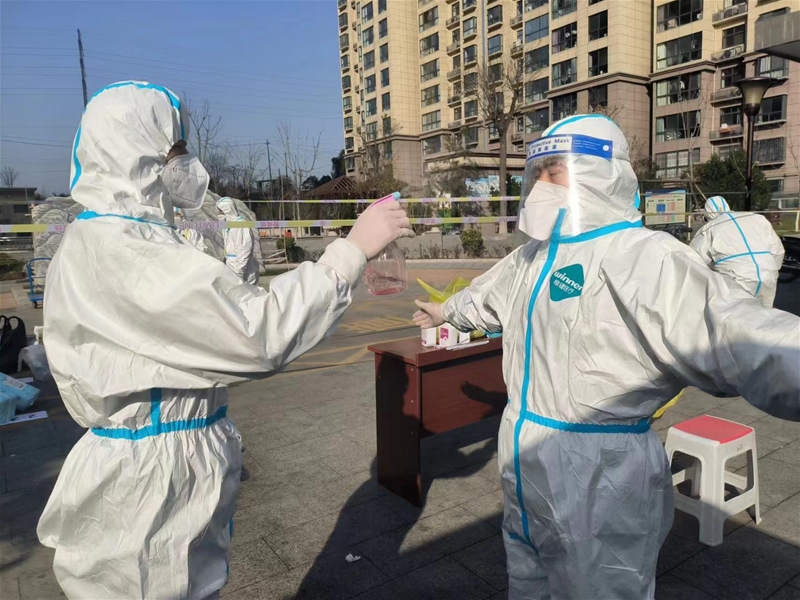 圖四:同晨妮:我的職責(zé)是早上6:00開始將核酸管的條碼貼好,做好核酸檢測(cè)前準(zhǔn)備工作;6:30開始協(xié)助醫(yī)護(hù)人員做核酸,維護(hù)隊(duì)伍秩序;10:30核酸結(jié)束后,收拾清理核酸垃圾,將警戒帶及桌凳轉(zhuǎn)移到庫(kù)房,核酸檢測(cè)完對(duì)接收的隔離區(qū)域的物品及物資進(jìn)行分類消殺和轉(zhuǎn)移,并幫助隔離住戶購(gòu)買天然氣等,配合隔離區(qū)域做好防護(hù)工作。