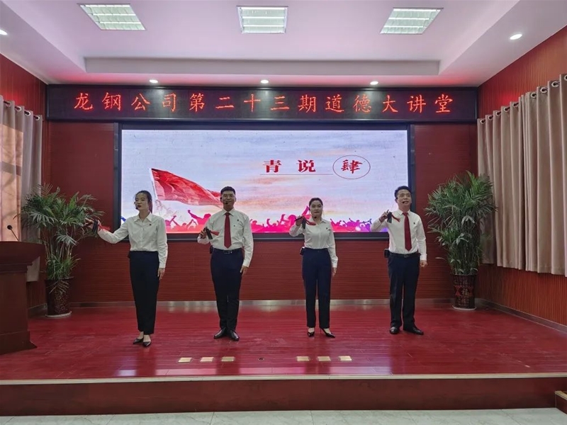 此次道德大講堂以“青春中國(guó) 強(qiáng)企有我”為主題,共設(shè)五個(gè)環(huán)節(jié)。青思環(huán)節(jié),全體在場(chǎng)人員一起聆聽習(xí)近平總書記在黨的二十大報(bào)告中對(duì)青年的寄語(yǔ),激發(fā)了大家堅(jiān)定不移聽黨話、跟黨走,與時(shí)代同步伐、與人民共命運(yùn)、與企業(yè)齊奮進(jìn)的昂揚(yáng)斗志;青聲環(huán)節(jié),一曲《少年中國(guó)說(shuō)》將青年心似驕陽(yáng)、意氣風(fēng)發(fā)的開拓進(jìn)取之姿展露無(wú)遺;青才環(huán)節(jié),4名志愿者分享了鋼城優(yōu)秀青年的成長(zhǎng)故事,讓大家近距離感悟榜樣力量,體會(huì)先進(jìn)卓越,從而自覺(jué)對(duì)標(biāo)向模范看齊;青說(shuō)環(huán)節(jié),鏗鏘有力的快板表演讓黨的二十大精神更加深入人心,勉勵(lì)廣大青年堅(jiān)持學(xué)思用貫通、知信行統(tǒng)一;青拳環(huán)節(jié),退役青年軍人的擒敵拳打出了豪氣與壯志,更展現(xiàn)了龍鋼人堅(jiān)定理想、百折不撓、勇于創(chuàng)新、勇挑重?fù)?dān)的精氣神。
