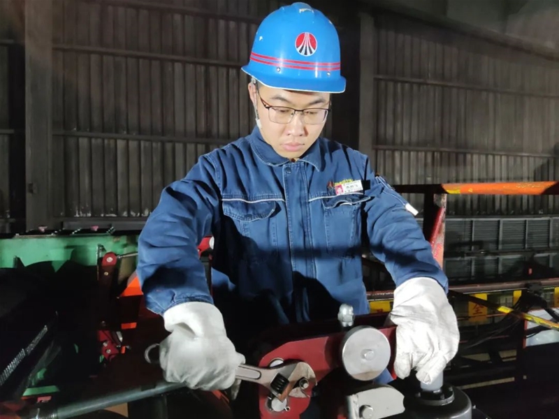 工作中難免會有各種各樣的緊急狀況出現(xiàn),崗位禁令和標(biāo)準(zhǔn)化作業(yè)他熟記于心,并能熟練運(yùn)用到實(shí)際工作中。在崗位上,他始終保持高昂的斗志和必勝的信心,與其他操作工全力配合,將精品鋼材順利入庫。他以確保天車安全順行為己任,利用生產(chǎn)間隙,積極維護(hù)設(shè)備,自主對傳動(dòng)軸、車輪等關(guān)鍵部位加油潤滑,利用小妙招治理減速機(jī)漏油,確保油污不亂滴等,每一項(xiàng)工作他都手到擒來。每當(dāng)?shù)孛孳囕v駛?cè)霂旆浚阃度氲骄o張的出庫作業(yè)中,只見他穩(wěn)坐操作室,推動(dòng)大小車控制器,吊運(yùn)鋼材,將一排排鋼材平穩(wěn)地放入車廂……看著整裝待發(fā)的車輛,他的心里別提有多高興。他用標(biāo)準(zhǔn)化作業(yè)詮釋了一名天車工對質(zhì)量的忠誠承諾。