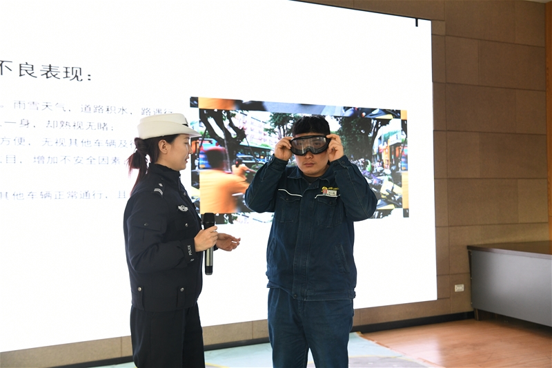 此次培訓邀請韓城市公安局交警中隊資深民警進行授課。她從交通事故數(shù)據(jù)和視頻切入,結(jié)合實際案例,講解事故危害,并進行事故成因與違法后果剖析,以案說法深入淺出地解讀了相關交通安全法規(guī),提升了全員遵章守法和依法安全行車意識。同時,她結(jié)合安全行車實際,利用事故展板、現(xiàn)場VR眼鏡模擬醉酒駕駛等方式與參培人員互動,讓參培人員通過現(xiàn)場模擬掌握冬季行車安全隱患,特別是雨雪天控距、霧天用燈等安全駕駛技巧與應急處理方法,進一步鞏固加深了駕駛員對交通安全的理解,普及了交通安全知識。培訓最后,還進行了知識測試,以考促學,鞏固學習成效。