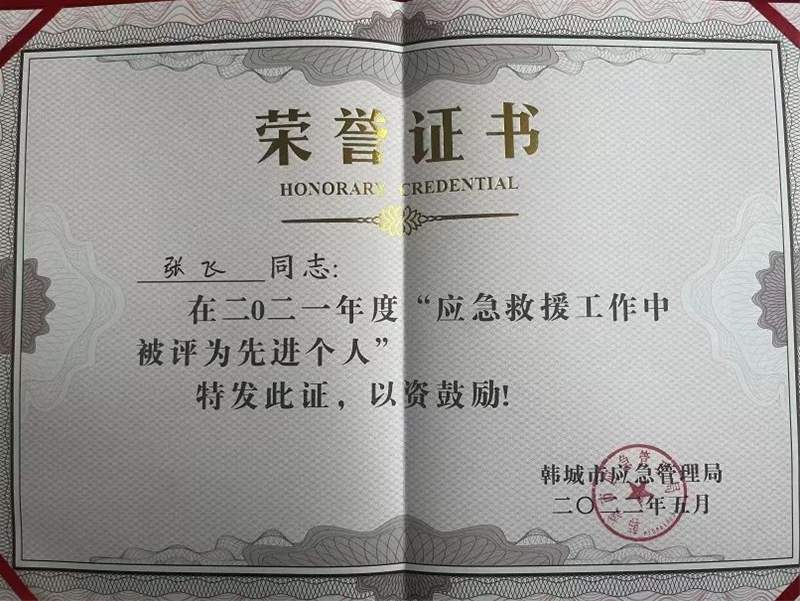 5月27日,韓城市應(yīng)急管理系統(tǒng)先進(jìn)集體和先進(jìn)工作者表彰大會(huì)在韓城市應(yīng)急管理局舉行,龍鋼公司應(yīng)急救援隊(duì)獲得“韓城市2021年度應(yīng)急救援隊(duì)伍先進(jìn)單位”,并現(xiàn)場(chǎng)授予“市級(jí)應(yīng)急救援隊(duì)伍”獎(jiǎng)牌,公司氣體防護(hù)中心副主任張飛被授予“韓城市2021年度應(yīng)急救援工作先進(jìn)個(gè)人”稱(chēng)號(hào)。