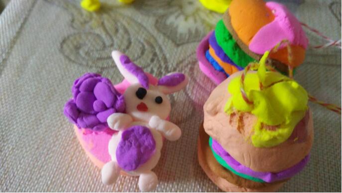 妮子的手很巧,一盒橡皮泥在她的手里像施了魔法似的千變?nèi)f化,想要什么就捏什么:有七彩虹,有美味的心形蛋糕,有漂亮的蝴蝶仙子,有吃著胡蘿卜的兔子,有躺在嬰兒車?yán)锏男雰,有套在手指上的大花指環(huán),有掛在脖子上的漂亮吊墜,有小茶壺和小茶杯。旸程喜歡機(jī)器人,她就在手機(jī)上看了一眼,不一會功夫就捏出來了:藍(lán)色的身子,方形的頭,圓圓的眼睛,尖尖的耳朵,手里還托著個盤子,是專門送水或者送別的東西用的,竟和手機(jī)上的機(jī)器人相差無幾。旸程直夸“真不錯,真像,姐姐真棒!”再一會功夫,妮子又捏出了另一個機(jī)器人,倆人學(xué)機(jī)器人走路,學(xué)機(jī)器人對話,玩得不亦樂乎。